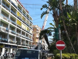 Alcune ore di interventi per sfrondare le storiche palme ed un attento controllo alla stabilità delle alte piante presenti. I controlli proseguono sistematicamente in tutta la città di Sanremo.