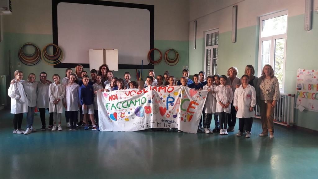 "Insieme a 170 scuole e ad oltre 500 associazioni nazionali, gli studenti dell'Istituto Biancheri: 5 A e 5 C della primaria di Via Veneto e alcuni studenti del Consiglio Comunale dei Ragazzi della Secondaria di 1° grado, accompagnati dalle docenti: C. Cassese, M. Rebaudo, B. Pagliuca e S. Attardo, sabato 6 ottobre saranno in viaggio verso Perugia dove si svolgeranno sia il meeting nazionale della pace e dei diritti umani che i laboratori tematici; domenica 7 ottobre parteciperanno alla Marcia della Pace vera e propria che, come di consueto, vedrà partire il corteo dai Giardini del Frontone di Perugia alle ore 9, per poi arrivare intorno alle 15 alla Rocca Maggiore di Assisi.