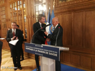 Charles Ange Ginésy (President des Departement des Alpes Maritimes) ha portato i saluti tutti gli intervenuti e ha fatto la Commemorazione ufficiale sull'Antica Contea di Nizza. Sono seguiti i saluti del Console Generale d'Italia a Nizza Cav.Uff. Raffaele De Benedictis, ed infine l'ospite più atteso il Principe Emanuele Filiberto di Savoia, che ha tracciato una breve storia di Casa Savoia e della “Contea di Nizza” dal 1388 al 1860. Al termine della cerimonia, al Principe Emanuele Filiberto sono state consegnate targhe e omaggi in ricordo della sua partecipazione. Il Cav.Uff. Roberto Pecchinino, ha consegnato al Console Generale d'Italia a Nizza Cav.Uff. Raffaele De Benedictis, una pergamena con tutti i nomi dei marinai Sanremesi arruolati sulle navi della flotta Napoleonica, nel 1809. La serata si è conclusa con un ricco rinfresco nei saloni del Palais des Rois Sardes.