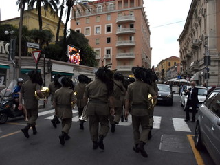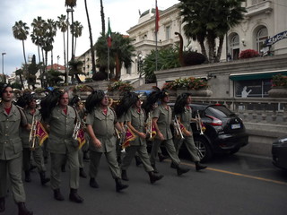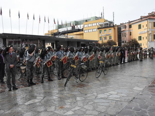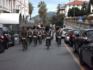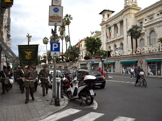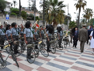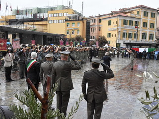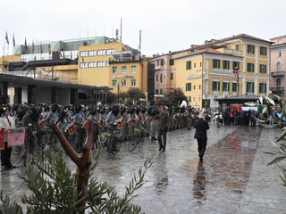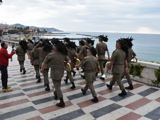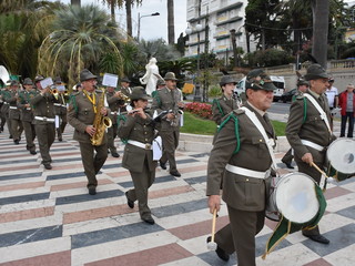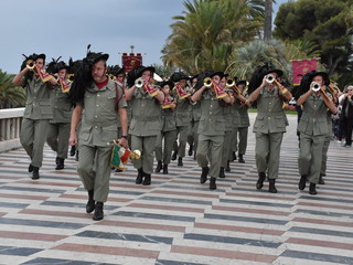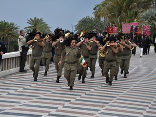 La pioggia ha un po' rovinato ma non fermato la parata delle Fanfare, nell'ambito delle manifestazioni celebrative dei 100 anni dalla vittoria nel primo conflitto mondiale, in corso a Sanremo.