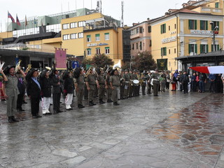 La sfilata è terminata in piazza Colombo, alla presenza dell'Assessore Mauro Menozzi, in rappresentanza del Comune. Nonostante la forte pioggia le fanfare sono rimaste inquadrate sulla piazza ed hanno eseguito l'inno di Mameli. I concerti nelle piazze della città si svolgeranno comunque, seppur in forma ridotta per la pioggia.