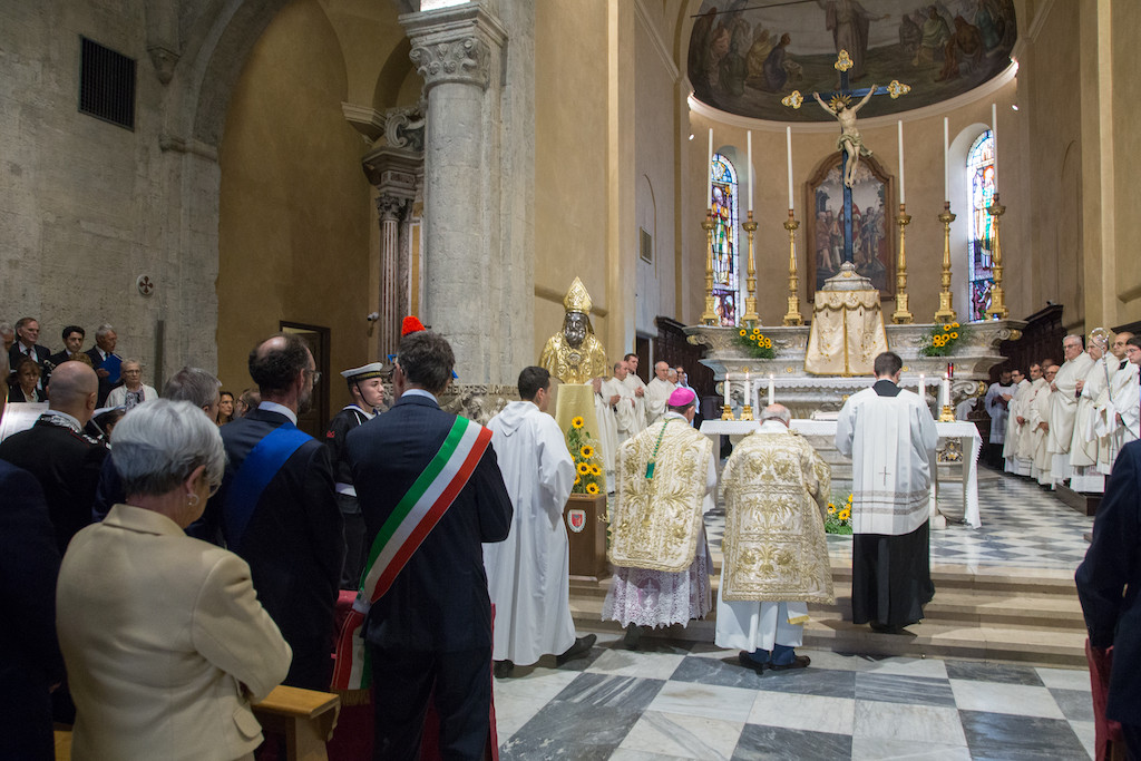 "La collaborazione tra comunità politica e la chiesa si registra nel rispetto dell'autonomia e dell'indipendenza di ciascuna. La Chiesa non vuole intromettersi in sfere che non le competono o approvare interessi particolari ma non può più sentire restrizioni alla propria libertà nel pronunciare il vangelo ed i principi morali e religiosi anche in materia sociale. Alla necessità di costruire costantemente il senso di una vera laicità che evidenzi e salvaguardi la differenza tra gli ambiti politico e religioso ma nello stesso tempo anche la loro intima e coerente connessione, si accompagna l'impegno di affermare con chiarezza la democrazia autentica e la bontà della vita sociale devono essere garantite da un forte consenso etico su imprescindibili valori come la dignità della persona umana, la solidarietà e la sussidiarietà. La ricorrenza patronale da questo punto di vista risplende come simbolo reale. Ci aiuti tutti San Romolo a rintracciare strade e sili di bene per costruire con il lievito del Vangelo la civiltà dell’amore".