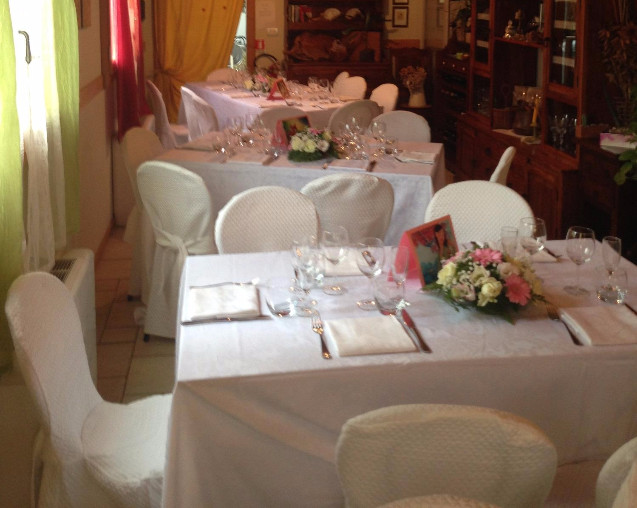 Il locale dispone di eleganti sale all’interno, una veranda coperta e riscaldata e ampi spazi all’esterno con giardino e terrazza.