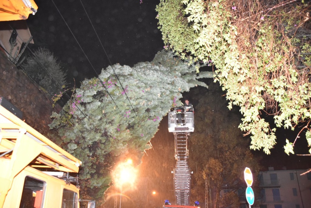 Arma di Taggia: grosso albero si abbatte sui cavi del filobus nei pressi della galleria (Foto e video)