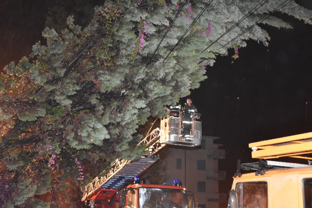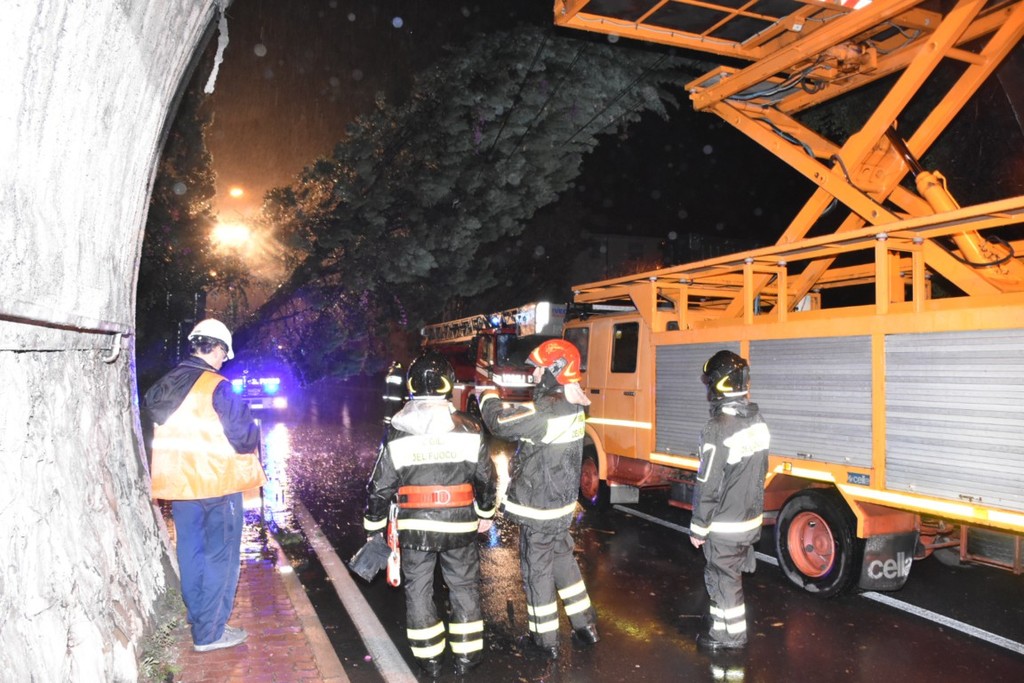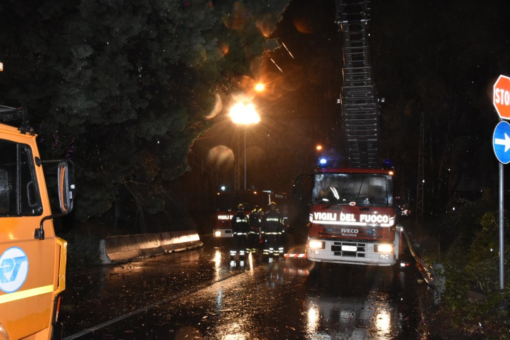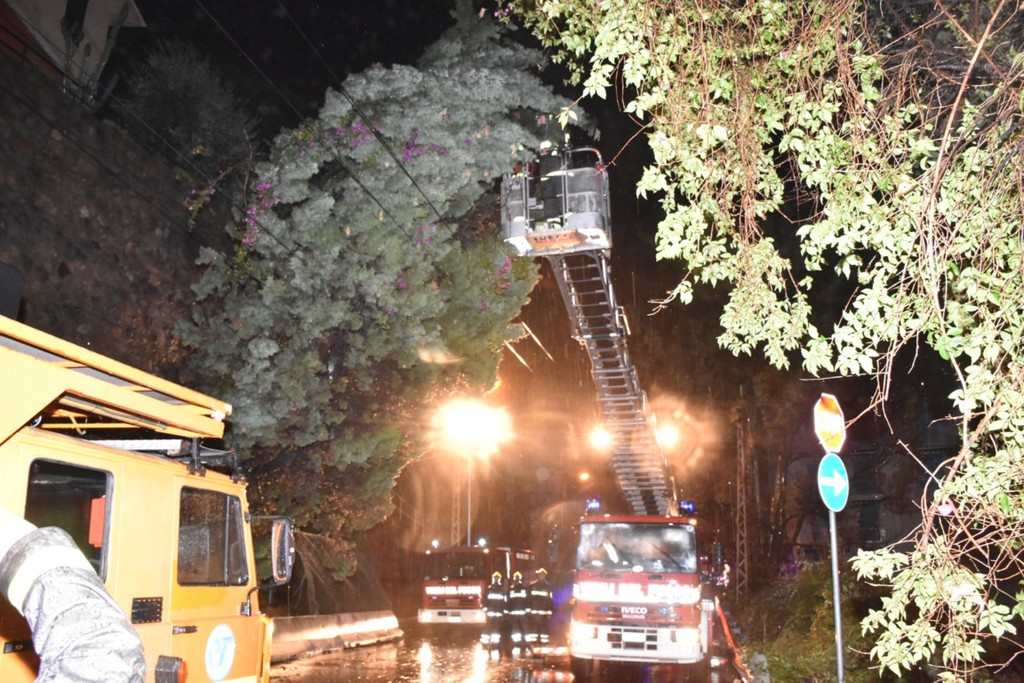 Un grosso albero è caduto sui fili del filobus sull'Aurelia, dalla galleria all'ingresso di Arma di Taggia. L'arbusto è sceso a causa del forte vento che sta sferzando la provincia di Imperia.