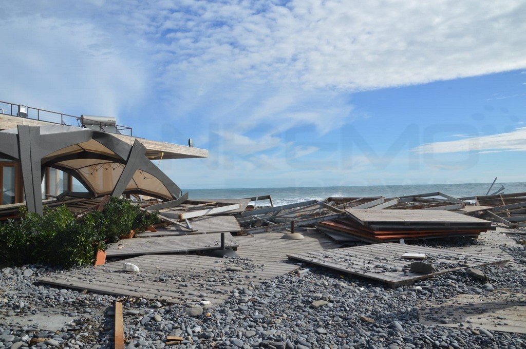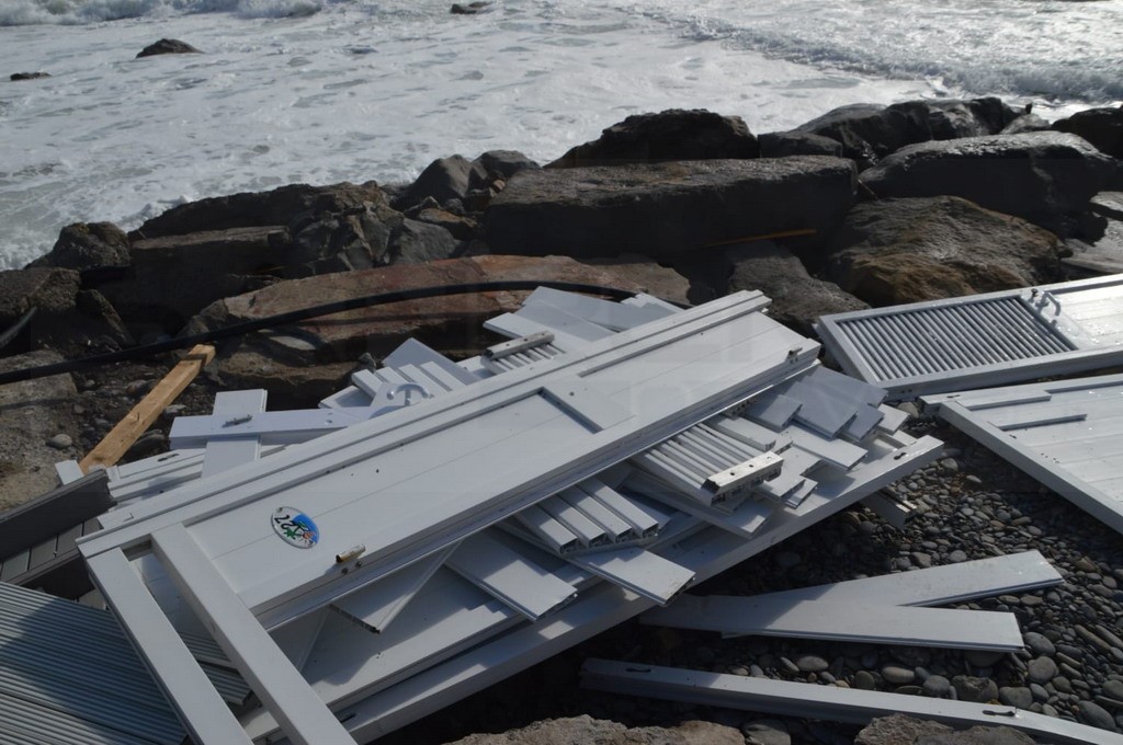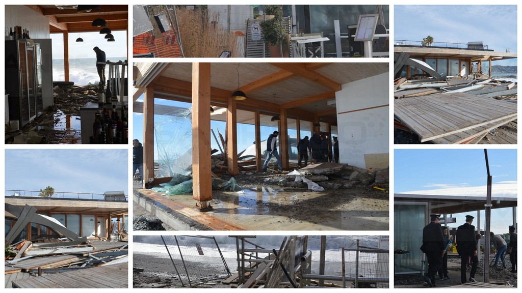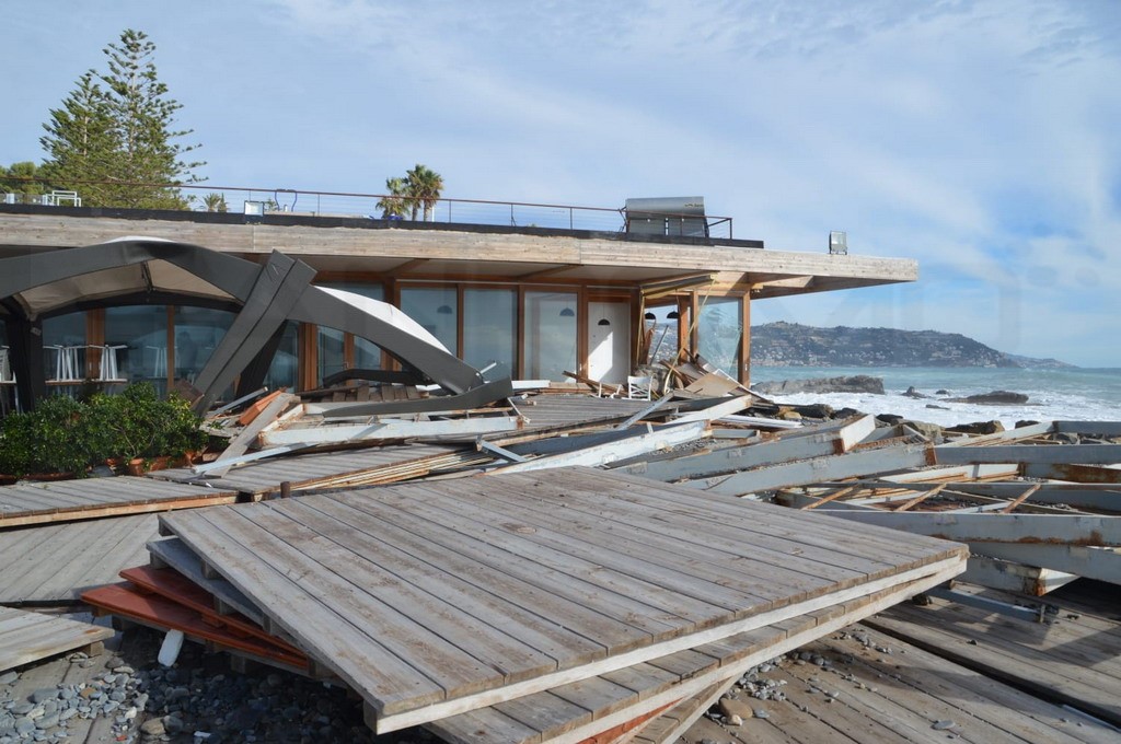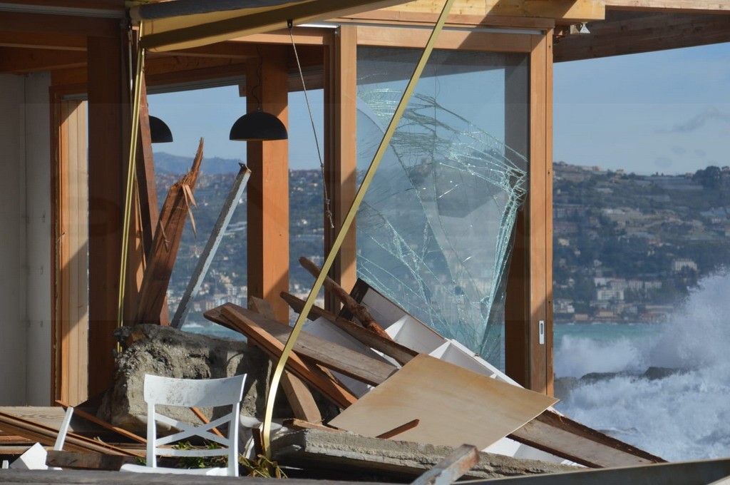 Bordighera: distrutti gli stabilimenti balneari 'Amarea' e Caranca, gravi danni al cantiere della nuova rotonda (Foto)