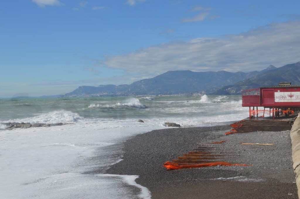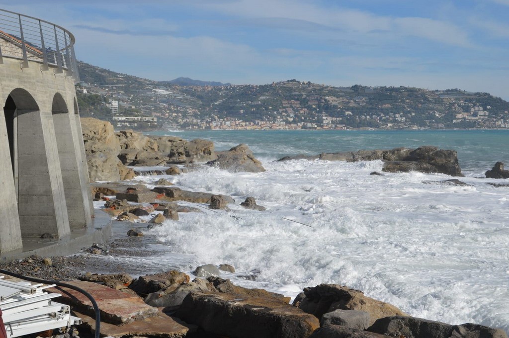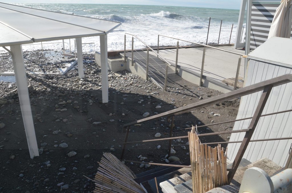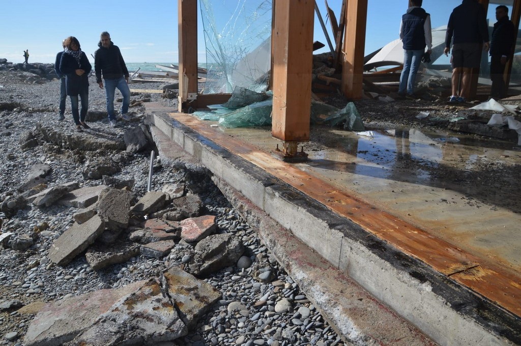 Bordighera: distrutti gli stabilimenti balneari 'Amarea' e Caranca, gravi danni al cantiere della nuova rotonda (Foto)