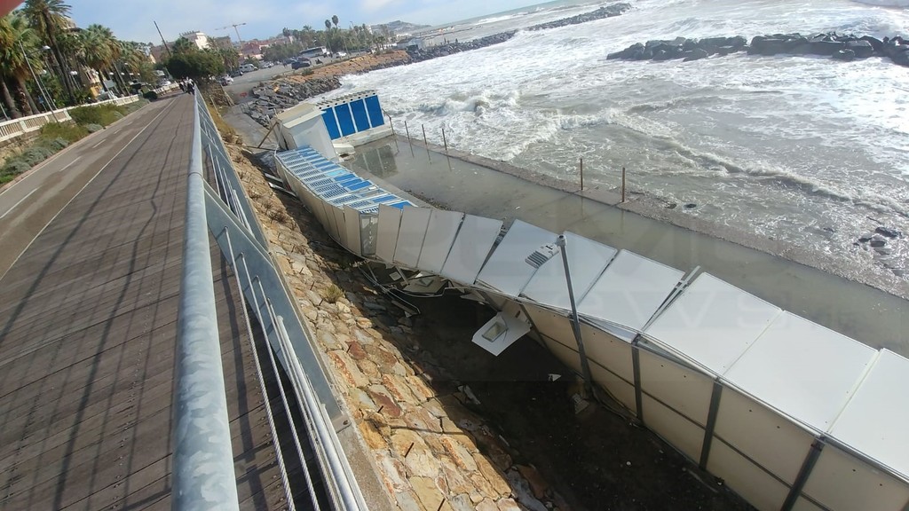 Tra i molti stabilimenti balneari devastati dalla forza del vento e del mare, a Sanremo c’è anche il ‘Lido Fontana’ sulla passeggiata Imperatrice.