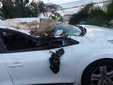 La pianta è finita su una Renault con targa francese, distruggendola quasi completamente.