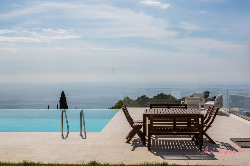 La villa è stata totalmente ristrutturata in tempi recenti, utilizzando materiali di eccellente pregio e viene venduta completamente arredata. E’ composta dalla zona di rappresentanza con la sala da pranzo, il soggiorno, la sala della musica, la sala biliardo e la sala cinema-tv, cucina, cinque camere da letto con cabine armadi, una suite padronale con sala da bagno privata con jacuzzi e cromoterapia, cinque bagni, cucina esterna, due appartamenti per gli ospiti, sauna e palestra.