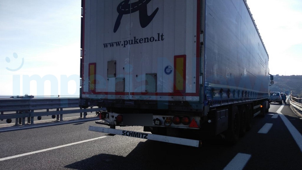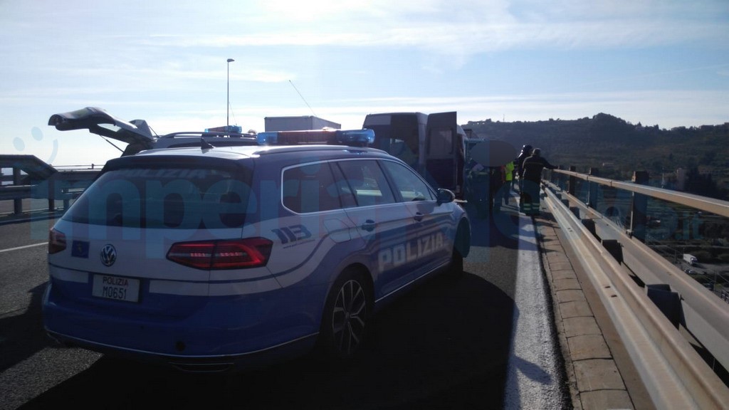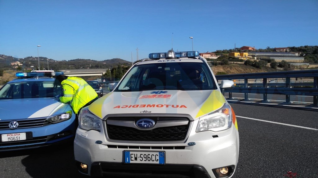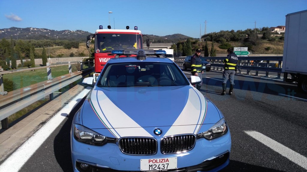 Incidente stradale, poco dopo mezzogiorno sull’autostrada A10 Genova-Ventimiglia, tra Imperia Ovest ed Arma di Taggia al km 112, poco dopo il casello del capoluogo in direzione Francia.