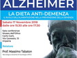 «Nella malattia di Alzheimer (AD) la patologia, costituita dalla deposizione di beta-amiloide e degenerazione neuronale, inizia 30 anni prima dell’inizio dei sintomi” afferma il prof. Tabaton “per cui c’è spazio per la prevenzione secondaria, anche perché le sperimentazioni terapeutiche mirate a incidere sul meccanismo sono finora fallite. La dieta è un fattore di protezione. La dieta mediterranea, ricca sia di acidi grassi monoinsaturi (olio d’oliva), polinsaturi , di antiossidanti, e di polifenoli riduce del 30% il rischio di demenza, come è stato dimostrato in studi controllati. Allo stesso modo è protettiva l’attività fisica moderata, come ad esempio una passeggiata di 30 minuti per cinque giorni la settimana. Entrambe le strategie non sono efficaci quando i sintomi sono iniziati».