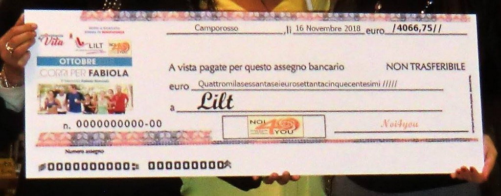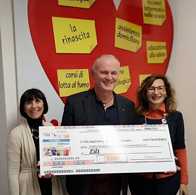 Si è trattato di un momento importante nel quale la LILT e Noi4You, unite, hanno sottolineato il grande successo ottenuto nella gara di beneficenza in ricordo di Fabiola Brancato. “Questi contributi – evidenzia la Lilt - come sempre amiamo ricordare, verranno interamente impiegati nella nostra provincia per continuare a dare e promuovere la prevenzione così come sostenere le attività sul territorio”.