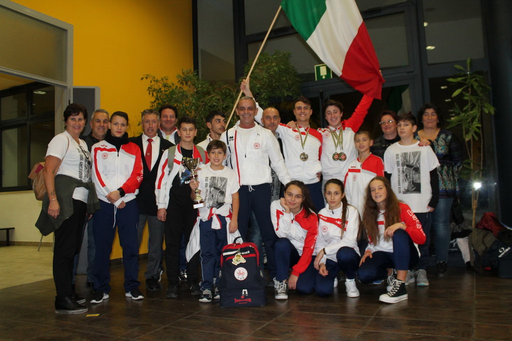 A chiusura di un anno di continui successi in campo nazionale, il ‘Fudoshin’, capitanato dal M° Dario Regina e coadiuvato dagli istruttori Denis Falavigna ed Erika Farina oltre all’arbitro internazionale Lucio Amante, ha ottenuto risultati insperati nelle varie e affollate categorie che sono valsi il 10° posto su 87 organizzazioni italiane e straniere partecipanti. Tutti i 10 atleti della società ponentina sono saliti sul podio. Eccellenti le performance di Francesco Sinisi, oro nel kumite individuale ed a squadre, ma anche di Sara Guidetti, oro nel kumite e bronzo nel kata. Senza dimenticare la medaglia più preziosa per la squadra mista, composta da Francesco ed Alice Sinisi e da Luca Biamonti.