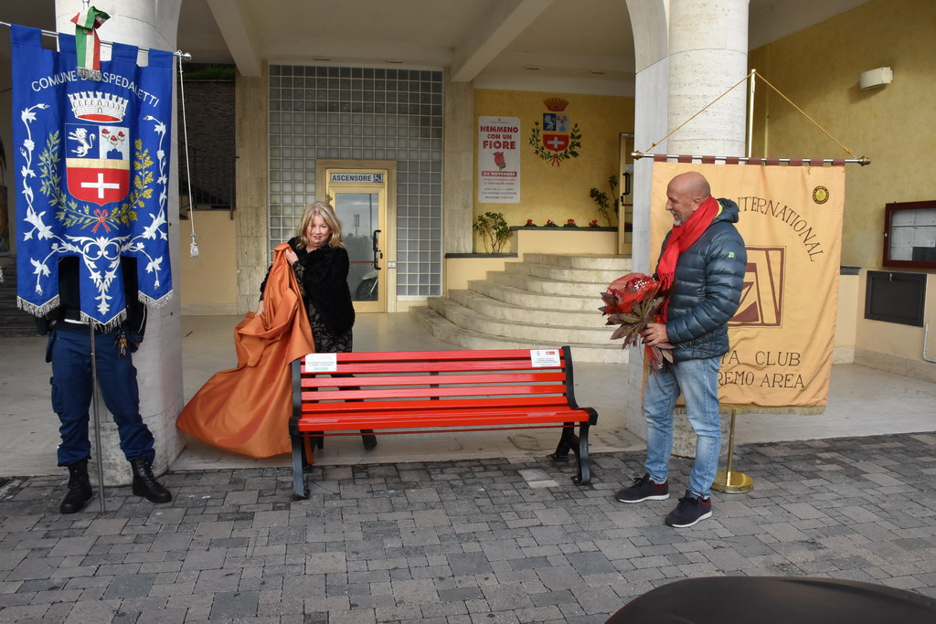 Con l'inaugurazione di una panchina 'rossa' di fronte alla sede comunale, l'Amministrazione di Ospedaletti e lo Zonta Club di Sanremo, con l'associazione P.E.N.E.L.O.P.E. (Donne del Ponente per le Pari Opportunità) di Bordighera, il Centro Antiviolenza ISV (Insieme Senza Violenza) Imperia Sanremo Ventimiglia, è stato dato il via ad una serie di eventi per dire basta alla violenza contro le donne.