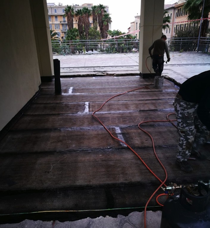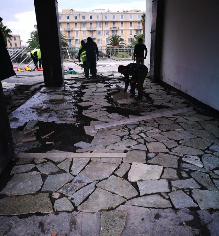 Dopo l’installazione del grande schermo sul tetto ed i lavori di sistemazione del solettone, quest’oggi l’Amministrazione comunale di Sanremo è intervenuta per la sostituzione di pali e bandiere in piazza Colombo a Sanremo.