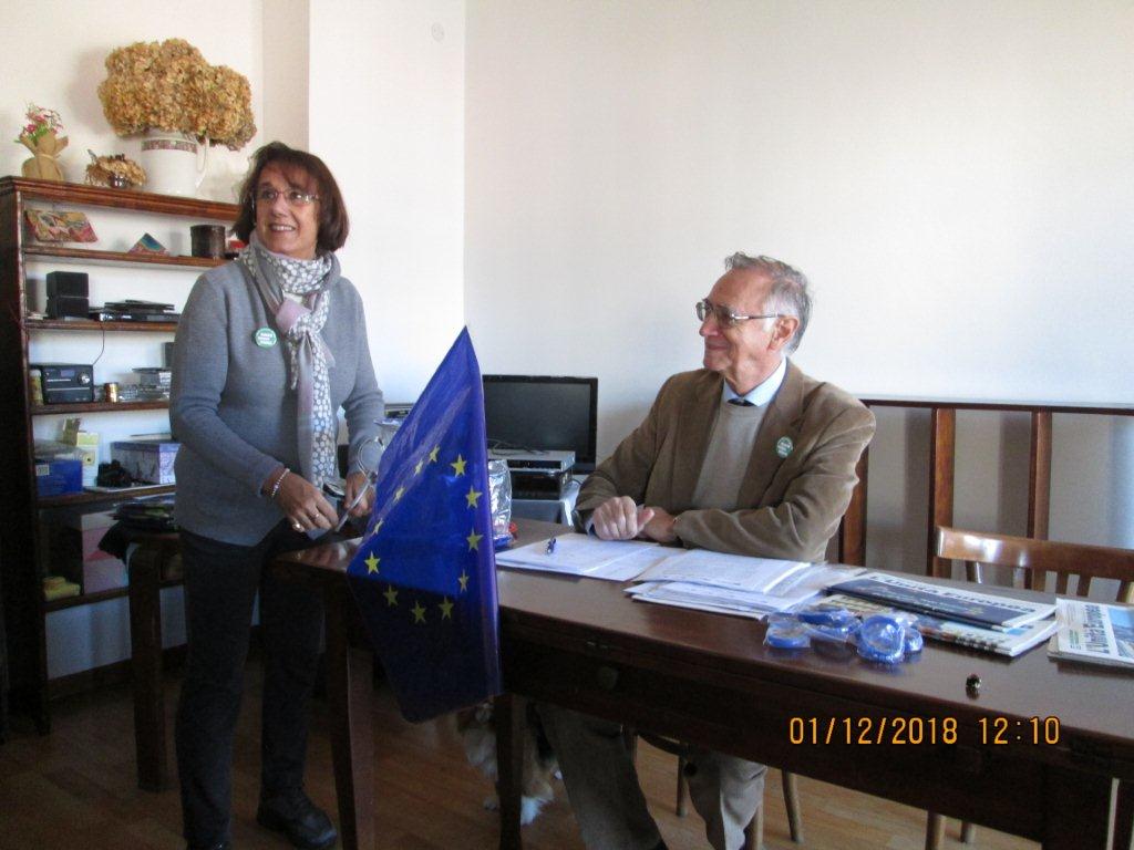 Nelle foto del prof.Raneri vediamo alcuni momenti del proficuo incontro con scambio di idee, rilancio di iniziative e diffusione della pubblicazione "L'unità europea" (fondata da Altiero Spinelli nel 1943) di cui vediamo la copertina del n°5/2018: sotto un cielo a 12 stelle c'è una band musicale e la scritta 'Diamo un'anima all'Europa'.