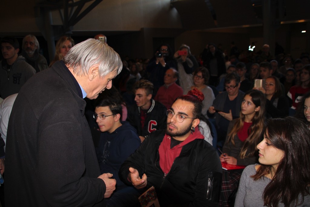 Introdotto dai saluti di Maura Orengo di ‘Libera’ e dell’assessore alla Cultura del Comune di Sanremo Eugenio Nocita, Don Luigi Ciotti ha risposto alle molte domande degli studenti presenti al Palafiori.