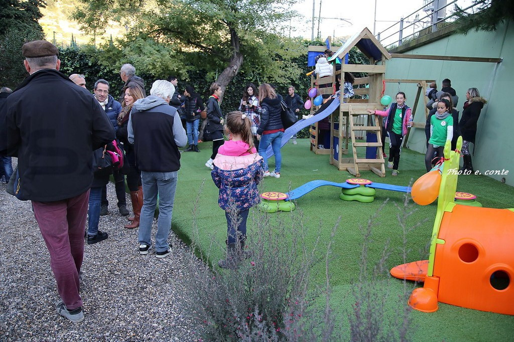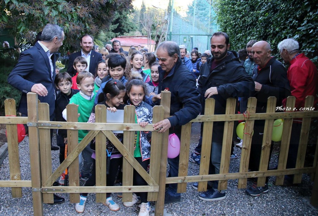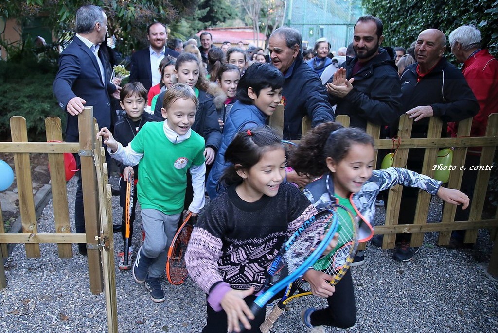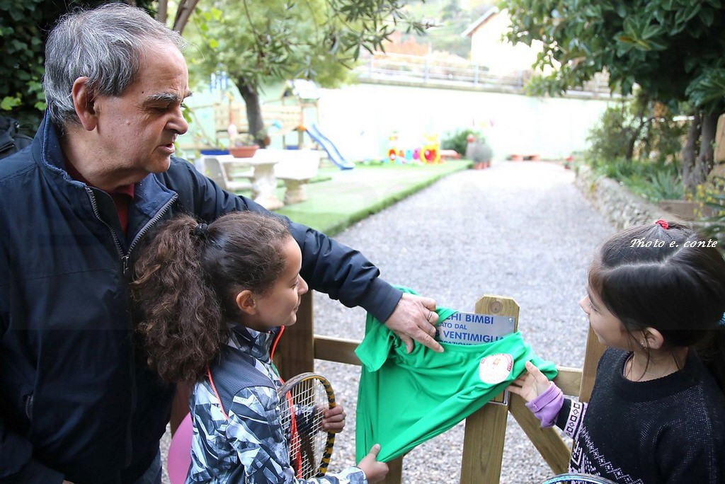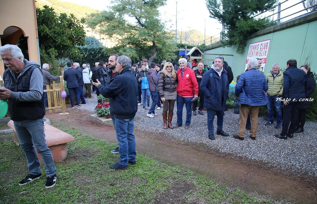 A rappresentarla sono intervenuti il presidente Armando Bosio, Vincenzo Zinghini e Jacopo Leone (membri del CDA della fondazione che opera a Ventimiglia con generosità e grande collaborazione in vari settori), alcuni soci del Tennis Club (Michele Facciolo, Paolo Minchella, Alfonso Frisina, Lorenzo Orusa, Antonio Verzino, Alessandro Capone e Fabrizio Rossero) che hanno operato in stretta collaborazione all’esecuzione dell’impianto, che ha riqualificato completamente un’area e offerto un giardino protetto e tranquillo ai piccoli frequentatori.