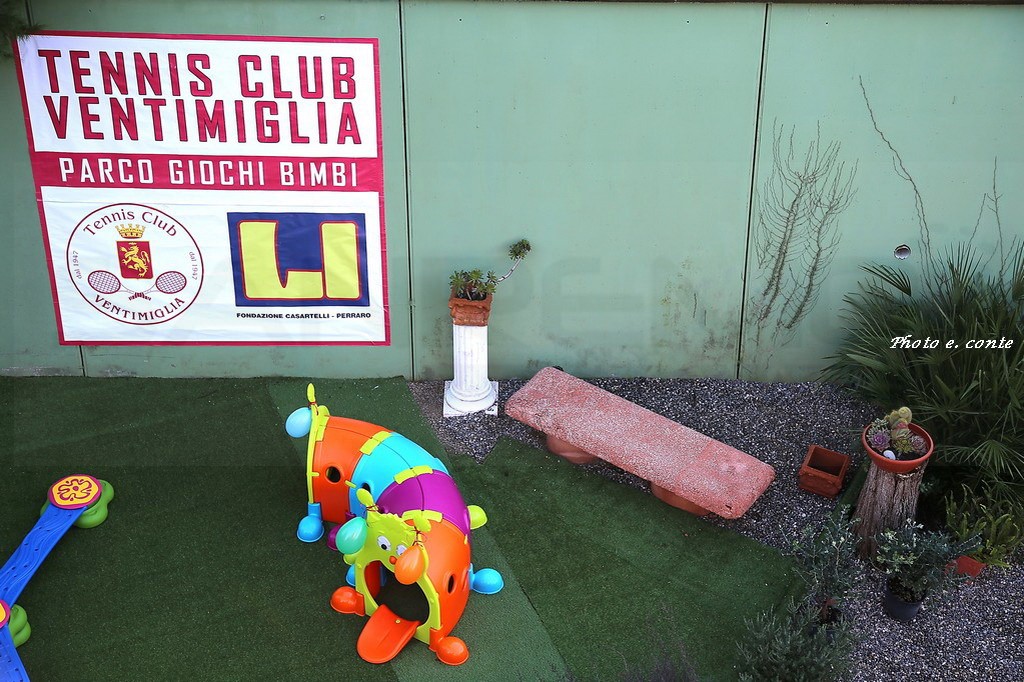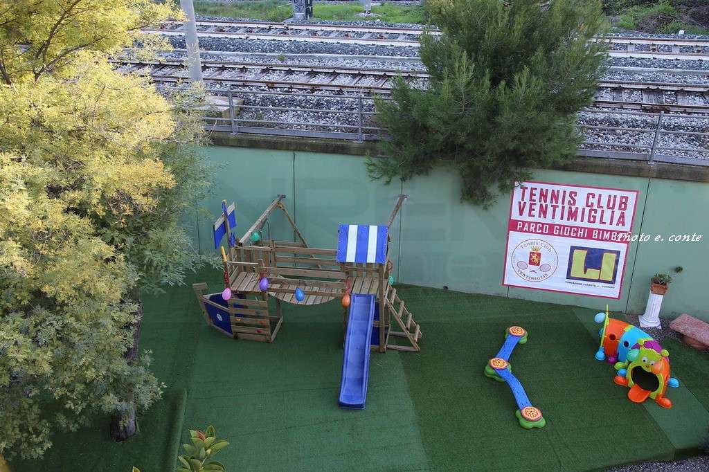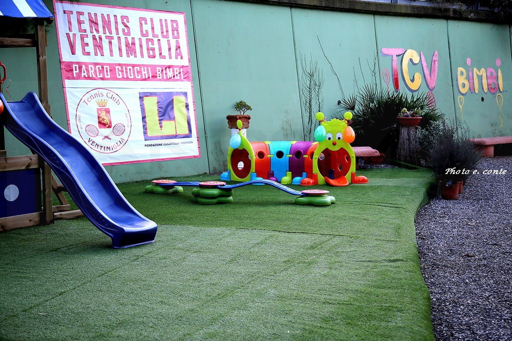 Il nuovo parco ospita numerosi e differenti giochi inseriti in armoniosi spazi verdi; la loro disposizione e collocazione è stata studiata con cura, per ottenere la massima sicurezza per i bambini, senza trascurare gli eleganti arredi esterni, sedie e tavoli per i genitori. Tra gli ospiti anche l’Onorevole Flavio Di Muro, l’architetto Campagna (assessore allo sport del Comune di Ventimiglia) e Silvano Martella presidente del T.C. Ospedaletti. Anche il M° Massimo Botrini ha voluto dare risalto ad uno spazio che contribuisce a rendere il Club di Ventimiglia uno dei più ospitali della Liguria.