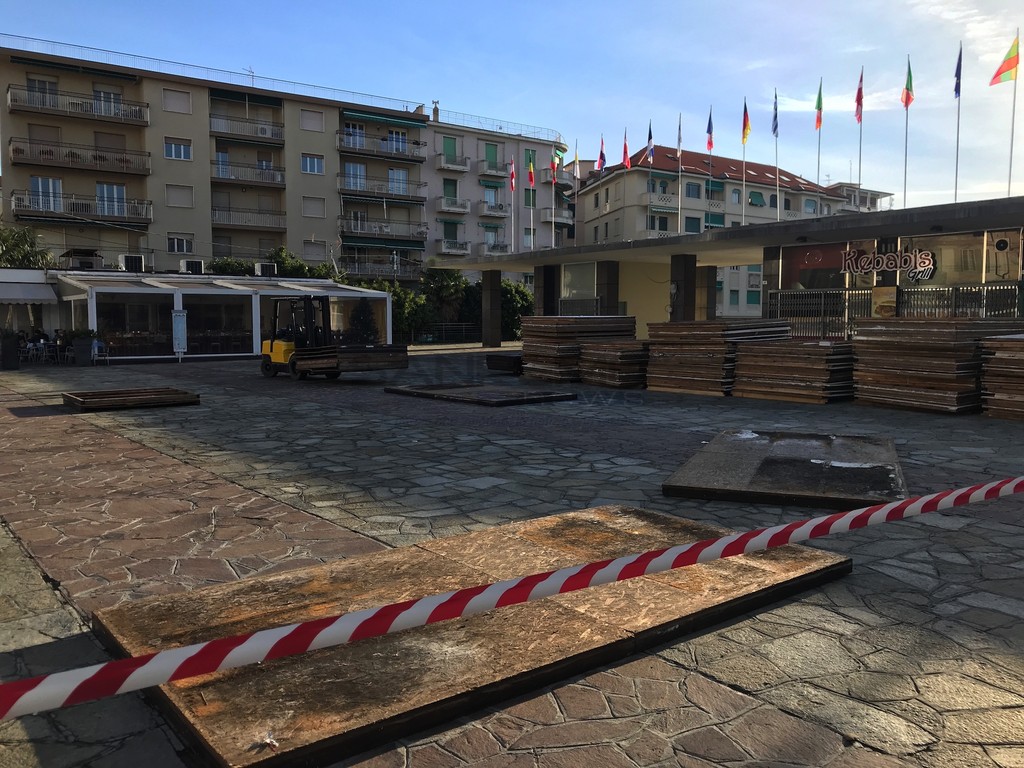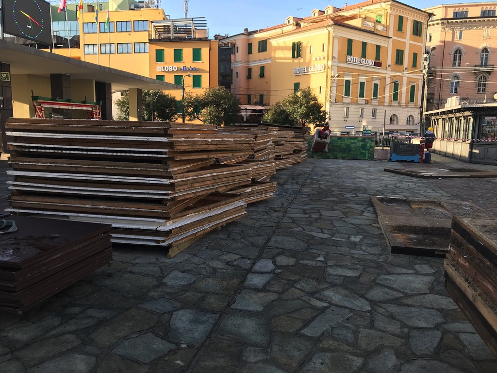 Sono iniziati i lavori per la costruzione del mercatino di Natale in piazza Colombo. Dopo l'albero di Natale luminoso in piazza Borea D'Olmo e le luminarie nelle vie del centro, nei prossimi giorni cittadini e turisti troveranno anche il mercatino nella centralissima piazza.
