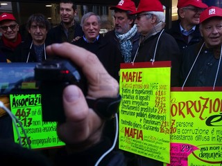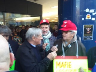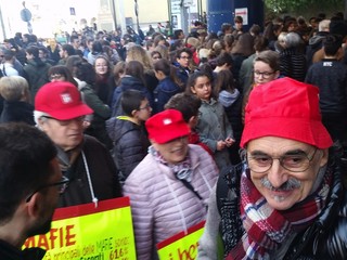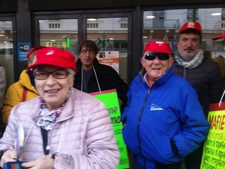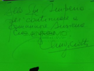 Al termine dell’incontro con gli studenti Don Luigi Ciotti ha ricevuto la visita dei rappresentanti dello Sci Cgil. È stata l’occasione per far firmare al fondatore di ‘Libera’ i cartelloni realizzati da Alfredo Schiavi.