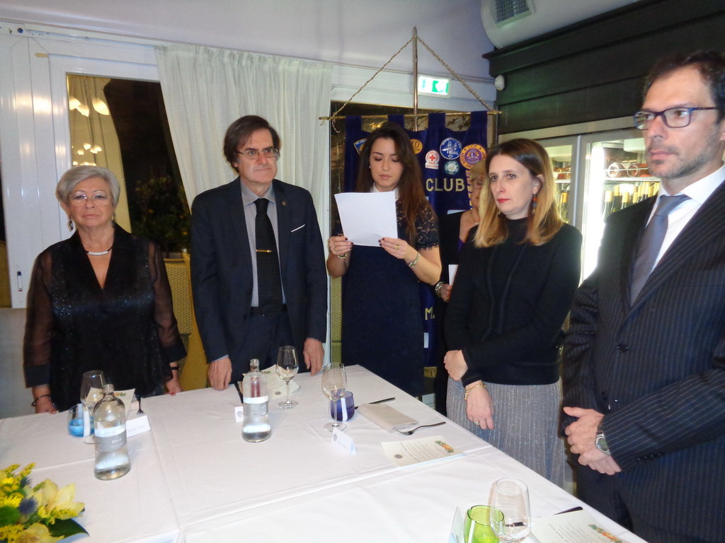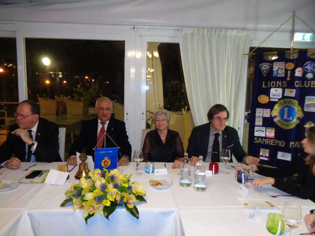 La cerimoniera Giovanna Fogliarini ha preso la parola e dopo aver invitato i presenti ad accomodarsi ha presentato il tavolo presidenziale cosi composto: Danilo Papa (presidente), Sara Muia e Marisa Squillace (officer), Mauro Bianchi (IPCG), Enzo Benza (Pres. club Host), Vittorio Ingenito (socio e sindaco di Bordighera) con la consorte Ethel, Costanza Pireri (vice Sindaco di Sanremo).