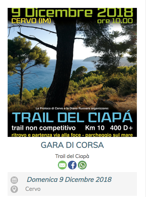 La Pro Loco di Cervo e la Diano Runners hanno organizzato per oggi 9 dicembre 2018 la gara amatoriale podistica TRIAL DEL CIAPA'.