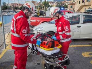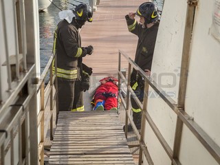 Una novità: quest’anno mentre veniva acceso il fumogeno a simulazione dell’incendio, la motovedetta CP864 si è andata a posizionare all’ingresso del porto per chiuderne l’accesso e permettere le operazioni di soccorso in totale sicurezza. Si tratta di una tradizionale esercitazione che viene svolta ogni sei mesi e serve per testare la preparazione della macchina dei soccorsi in scenari di intervento complessi. Ad esempio, oggi è stata simulata l’impossibilità ad intervenire per una seconda ambulanza, così la motovedetta della Guardia Costiera è rientrata portando la spinale e gli altri presidi necessari ad immobilizzare l’ultimo ferito.