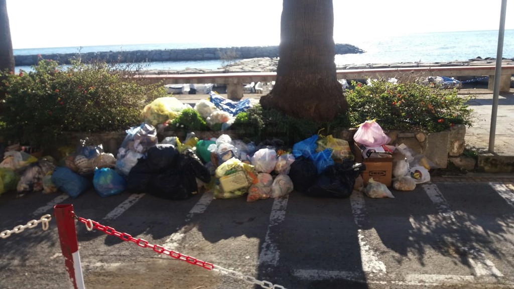Riva Ligure: c’è sciopero dei netturbini e salta la raccolta, l’esercito degli incivili crea una discarica a cielo aperto sulla passeggiata mare (Foto)