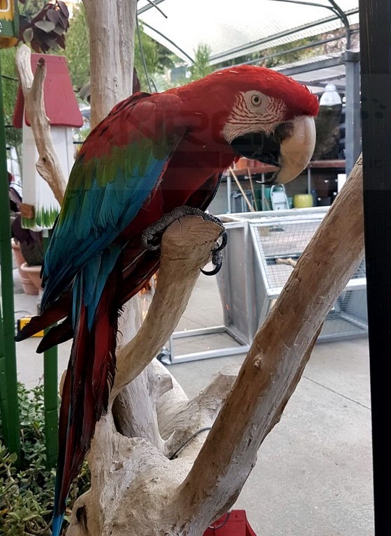E' uno splendido pappagallo che è anche la mascotte del negozio. Si tratta di una ‘Ara aliverdi’ di ben 40 anni di età e che può arrivare addirittura a 100 anni. Indagini della Polizia.