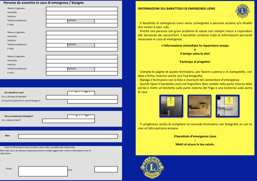Il barattolo verrà messo a disposizione soprattutto della popolazione più anziana e contiene un foglio da compilare in ogni dettaglio fornendo informazioni utili sulla propria persona e su tutto ciò che potrebbe essere utile ai soccorritori in caso di emergenza. Nel caso il paziente fosse incosciente, infatti, grazie alle informazioni contenute nel barattolo il soccorritore potrà avere tutte le nozioni fondamentali per migliorare e adattare il proprio servizio in base al paziente.