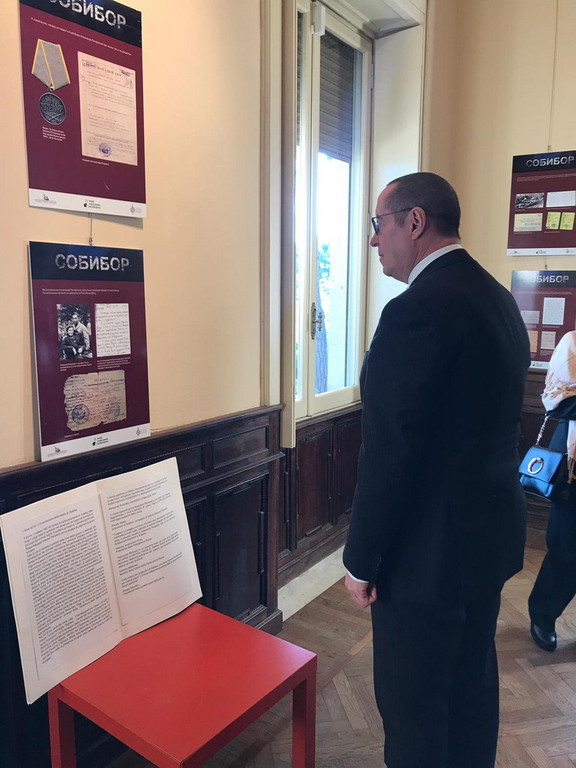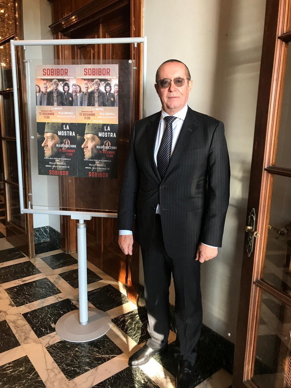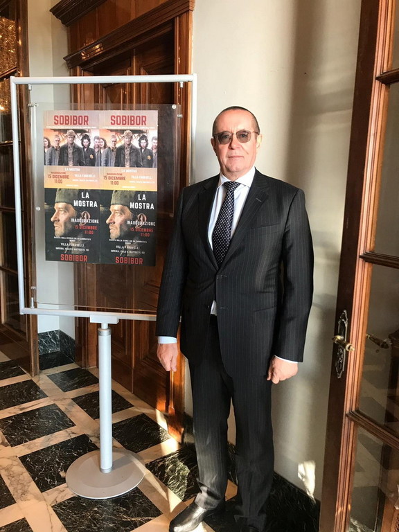 "La giornata del 15 dicembre è stata una manifestazione iniziata alle ore 11 e ha visto, nella bellissima cornice imperiese, presso il museo d'arte contemporanea di Villa Faravelli, una giornata dedicata al ricordo, in cui la comunità russa ed italiana congiuntamente hanno festeggiato la ricorrenza della rivolta del campo di Sobibor, ove nel 1943 i prigionieri insorsero capeggiati dal tenente dell'Armata Rossa, Aleksander Aronovic Pecerskji. Il loro gesto testimonia l'anelito di fratellanza, di libertà ,di giustizia e di pace che univa i popoli del nostro Continente. A quell'episodio sono stati dedicati il film ‘Fuga da Sobibor’ ed il poema ‘LJiuka’ di M. Geilikman. Per commemorare degnamente la rivolta di Sobibor, e per proporla quale esempio di quanto può fare l'aspirazione degli uomini alla libertà, il Centro Russo di Scienza e Cultura, diretto con sagacia e passione da Oleg Ossipov, ha già, come accennato precedentemente, organizzato tale evento a Roma".
