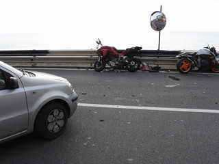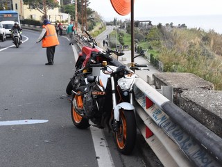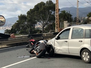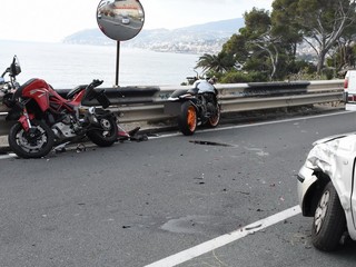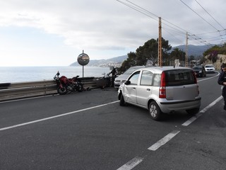 Sanremo: auto sbuca da una stradina, due motociclisti la centrano in pieno sull'Aurelia (Foto)