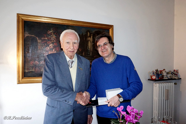 Nei giorni scorsi, durante le feste natalizie, al sanremese Comm. Giacomo Anfossi, il Presidente Vincenzo Benza del Lions Club Sanremo Host e il Cav.Uff. Roberto Pecchinino dell'A.N.I.O.C. hanno fatto visita al socio Giacomo(Mimmo) Anfossi, per consegnare la Pin del Lions Internazional, per i 45 anni di appartenenza al club 1969-2015, in attesa dell'arrivo dalla sede centrale Americana, della Pin che attesta la sua cinquantennale adesione al Lions International 1969-2019. Con una breve e semplice cerimonia, al Comm. Anfossi dopo il saluto di ringraziamento del Presidente Vincenzo Benza, al socio Lions Anfossi (classe 1925) per essere il decano del L.C.Sanremo Host, ha consegnato la Pin , la cravatta con il logo del Lions e un regalo da parte di tutti i soci Lions del Club.