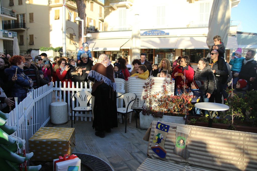 La befana è arrivata a bordo di un tipico gozzo ligure, simbolo della tradizione marinara che caratterizza la ridente cittadina. La vecchina, beniamina di grandi e piccini è stata scortata in una simbolica parata, insieme ai tre Re Magi ed a Topolino. Il corteo è andato dal lungomare fino in piazza Tiziano Chierotti, dove era stata allestito un piccolo villaggio per ospitare la befana.