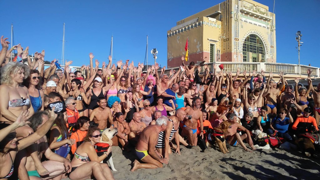 213 “eroi”, come li ha definiti lo showman Gianni Rossi, che si è occupato dell’intrattenimento e del riscaldamento dei partecipanti al cimento invernale di Imperia che oggi alla spiaggia d’Oro, approfittando della splendida giornata di sole hanno inaugurato la stagione dei bagni.
