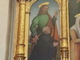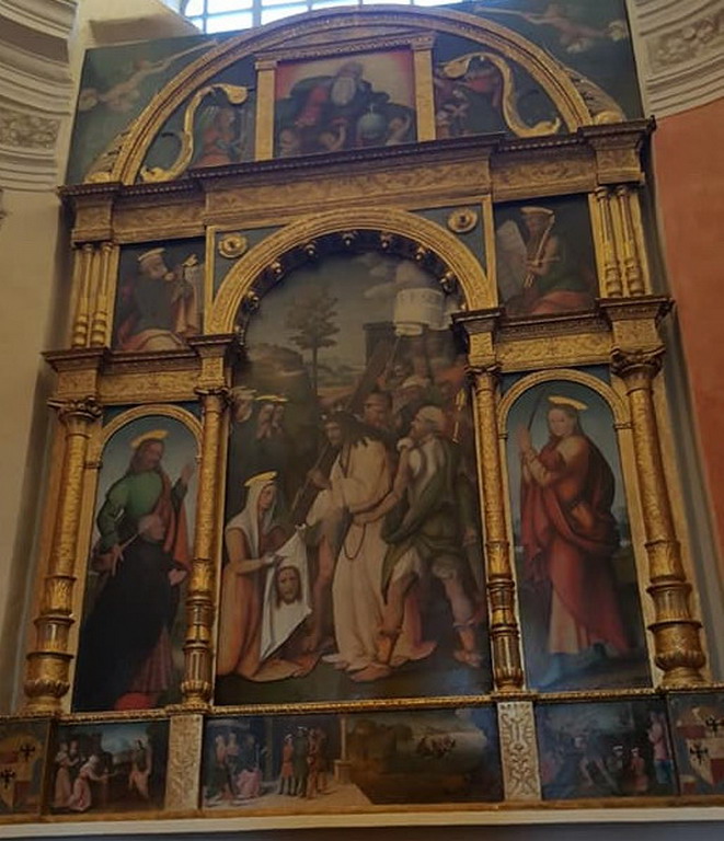 Nei pannelli inferiori è dipinto lo stemma della famiglia Lascaris, uno scorcio di paesaggio marino, molto probabilmente la costa ligure da Imperia ad Alassio e una delle pochissime raffigurazione del portentoso castello del Maro. Il maestoso dipinto è visitabile negli orari di apertura della pieve o su appuntamento contattando la comunità monastica benedettina (0183.54501).