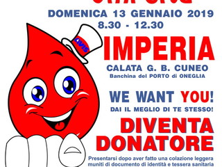Domenica prossima l'Avis di Imperia organizza la 'Giornata della donazione', che si terrà per la prima volta ad Imperia, in Calata G.B Cuneo di fronte a largo Sabatini, dalle 8.30 alle 12.30.