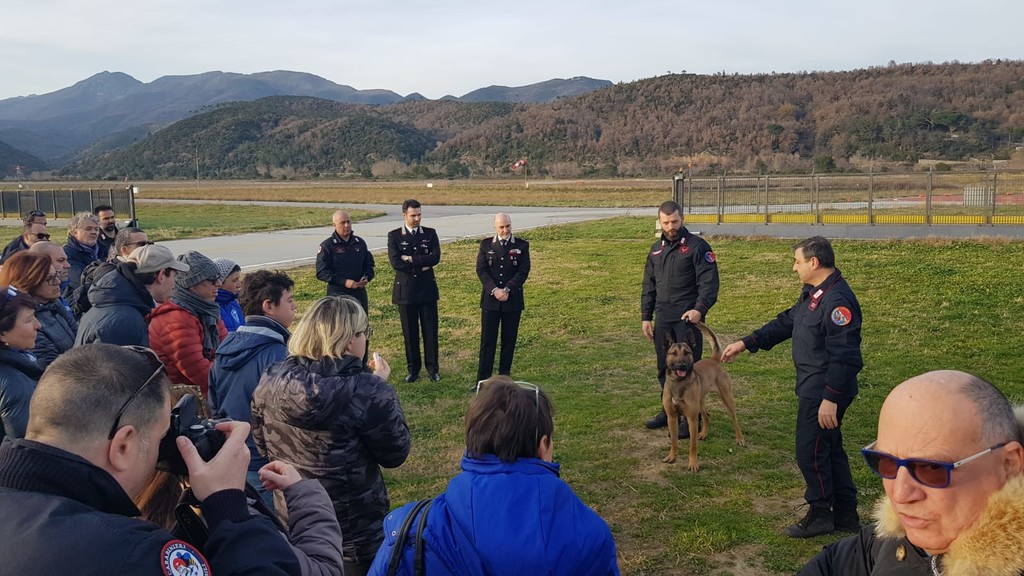 Ad accogliere i partecipanti il Ten. Col. Claudio Proietti, Comandante del Nucleo Elicotteri il quale ha illustrato ai giovani atleti le tipologie di attività effettuate dal proprio Reparto proiettando immagini e filmati che hanno suscitato l’entusiasmo dei presenti. Dopo una breva merenda pomeridiana, i partecipanti hanno potuto visionare da vicino l’elicottero in dotazione al Nucleo, un AGUSTA A 109 Nexus, e salire a bordo per realizzare alcune foto. La gita è proseguita con la visita al Nucleo Cinofili collocata all’interno della medesima struttura.