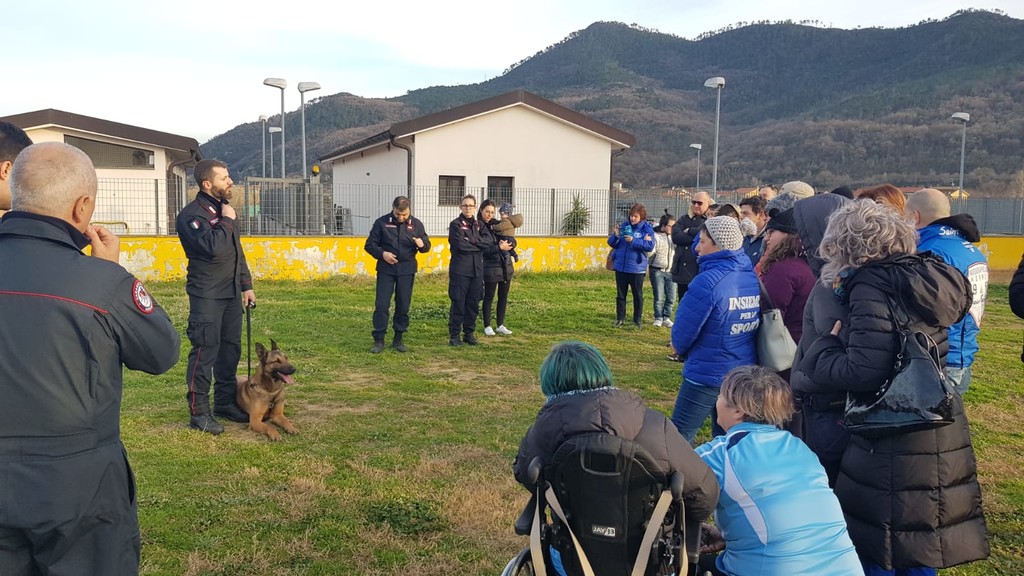 Gli atleti hanno potuto ammirare le potenzialità ed interagire con “REX”, un Malinois Belga appena giunto al Nucleo, addestrato per lo svolgimento di compiti specifici sia come cane da ricerca persone che d’assalto, impiegato anche nell’Ordine Pubblico. Un pomeriggio diverso per dei ragazzi speciali che sottolinea l’importanza dell’impegno sociale quotidianamente svolto dall’Arma dei Carabinieri.