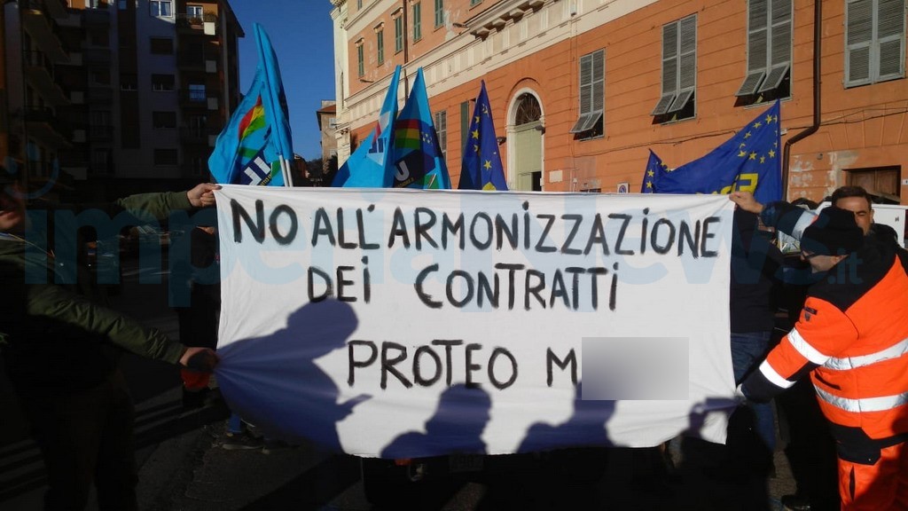 I sindacalisti Cgil, Cisl, Uil e Fiadel e gli operai si sono dati appuntamento per dare il via alla manifestazione, diretta verso la Prefettura dove verrà consegnato un documento con le motivazioni della protesta. La vicenda riguarda il contratto dei netturbini nelle valli Impero e Arroscia, assunti dalla cooperativa Proteo. Il braccio di ferro sull’applicazione tra l’azienda, che propone un contratto di cooperativa e i sindacati che chiedono un contratto di settore ha portato a una prima giornata di sciopero il 14 dicembre scorso.