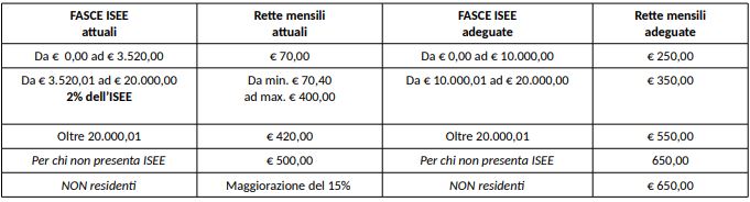 Tariffe aumentate anche per chi ha un isee superiore a 20mila euro che passano da una retta mensile di 420 euro a 550, che diventano 650 per chi non presenta dichiarazione isee a fronte dei 500 degli anni precedenti.