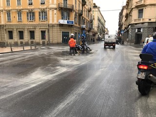 Sanremo: perdita di olio idraulico da un bus della Riviera Trasporti la causa dei problemi di stamattina in via Roma