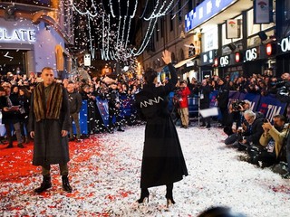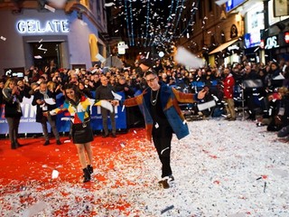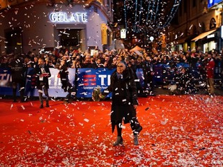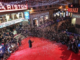Il lungo tappeto rosso tra piazza Borea D'Olmo, via Mameli e via Matteotti si è riempito di coriandoli e fotografi per la passerella che inaugura la settimana della kermesse. Un appuntamento molto atteso dai turisti e dai residenti che numerosi, hanno seguito il passaggio degli artisti introdotti e accompagnati dall’animazione di Gianni Rossi.