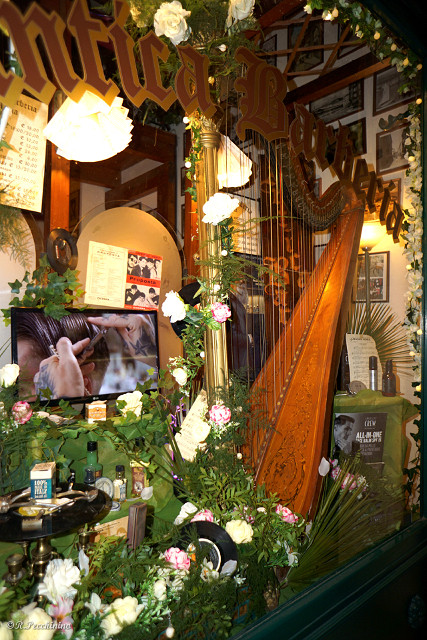 Una attraente scenografia realizzata con la collaborazione della Visual Merchandiser Cetty, che ha saputo armonizzare, antichi rasoi e attrezzatura da barbiere con fiori, vecchi dischi in vinile, spartiti e strumenti musicali. Quest' anno è in mostra la regina degli strumenti, una splendida Arpa a pedali a movimento doppio (sistema a fourchettes), costruita a Chicago dalla ditta Lyon & Healy; incisa sull'ottone del modiglione compare la scritta: Lyon & Healy Chicago Makers N° 1601. La bella vetrina dell'Antica Barberia Maria, di Oriti Maria, la prima barbiera d'Italia, si trova in via Capitan Pesante 13, a Sanremo. La titolare dell'Antica Barberia Maria, ha voluto portare con l'allestimento della vetrina il suo saluto e contributo al "69° Festival della Canzone Italiana", con l'augurio di aver saputo interpretare lo spirito di accoglienza richiesto dall'amministrazione della città, per l'arrivo dei turisti, cantanti e operatori del settore nell'ambito musicale e radiotelevisivo, valorizzando il più grande evento musicale dell'anno a Sanremo