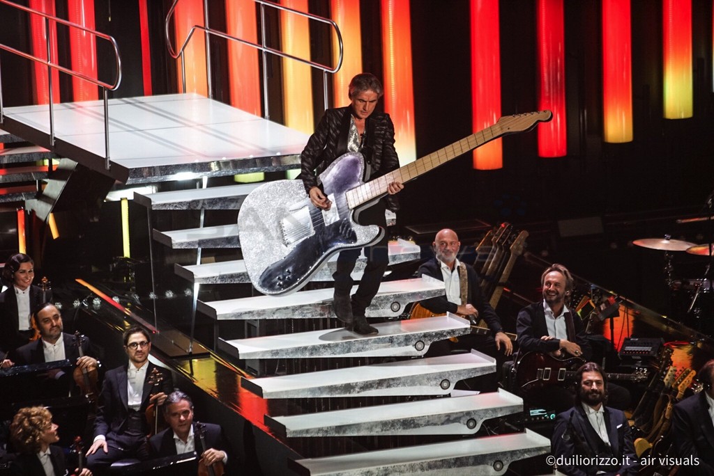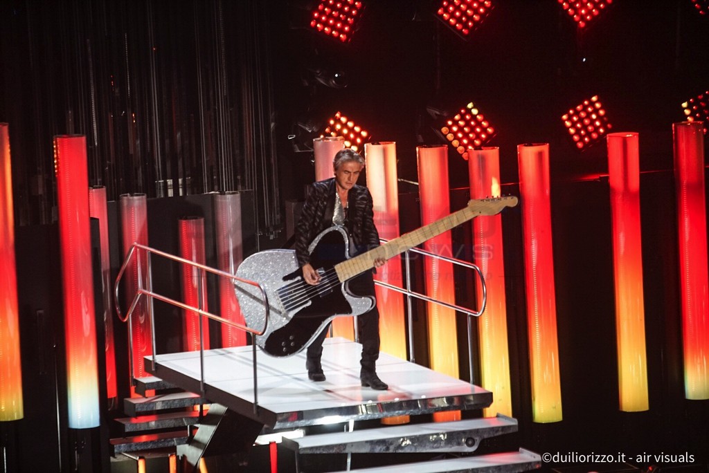 Ha aperto con "Le luci d'America", il nuovo singolo, per poi richiedere insistentemente una discesa dalla mitica scala dell'Ariston sulla quale si è presentato con tanto di chitarra gigante.