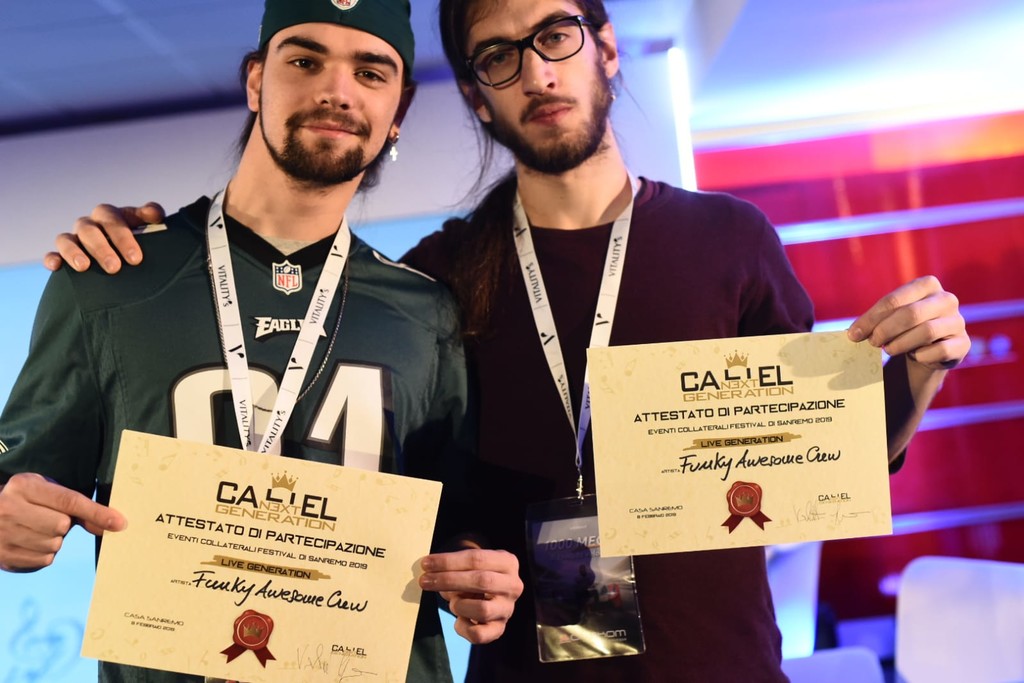 Nell'occasione sono stati consegnati gli attestati di partecipazione a tutti gli artisti iscritti al sito Caliel Next Generation che si sono esibiti con successo ieri in piazza piazza Siro Carli su palco Rai Siae; inoltre è stato premiato il gruppo Funky Awesome Crew con una pubblicazione su etichetta Caliel Music distribuita nei maggiori store digitali; da Believe digital ecco il cast completo degli artisti che si sono esibiti: Serp,Funky Awesome Crew, Francesca Colli Stefano Belluscio, Alan Spicy, Tweneboa, Vittorio Bertello, Micol Genesio, Iguana project, Devis Santoro, Blisters Soul Nassau, Giulio wilson, VXA rock band. Gli artisti continueranno ad esibirsi oggi con gli appuntamenti promozionali tv che si concluderanno con un'esibizione Casa Sanremo, inn sala Pino Daniele, con Red Ronnie.