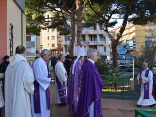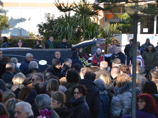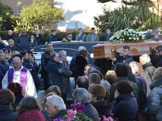 La bara portata a spalle dagli amici e la Messa officiata dal Vescovo della Diocesi di Ventimiglia-Sanremo, Mons. Antonio Suetta, nella chiesa di San Nicola.