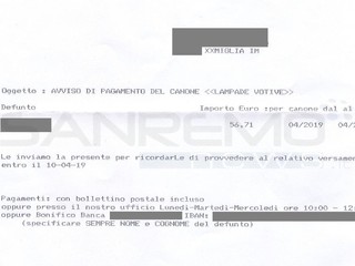“La Società ‘La Fiamma Sas’ non è più titolata a riscuotere il canone per le luci votive.” E’ quanto fanno sapere dal Comune di Ventimiglia a seguito di alcuni segnalazioni arrivate dai cittadini. Questi ultimi avrebbero, infatti, ricevuto nei giorni scorsi un avviso di pagamento del canone, da saldare entro il 10 aprile 2019, con annesso bollettino già compilato.